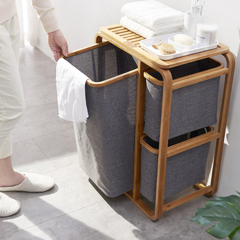 Ce panier vous offre une grande capacité de stockage grâce à ses trois compartiments. Cela vous permettra une excellente organisation et un trie très facile de votre linge sale. Leur trois tailles différentes vous permettront de répondre à tous vos besoins. Son design élégant en bambou et tissu vous permettront de décorer votre pièce de façon élégante, que ce soit dans la salle de bain ou dans une chambre par exemple.