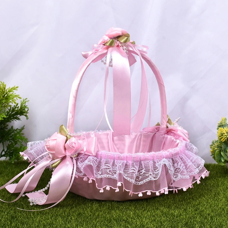 Le design de ce panier n’est pas seulement fonctionnel, mais également hautement décoratif. Les nœuds volumineux et les froufrous créent une texture riche qui capte l’œil et enchante les invités. Adapté pour tous les styles de mariage, des célébrations traditionnelles aux fêtes plus modernes, ce panier en satin rose est un choix élégant qui contribue à l’ambiance festive et romantique de l’événement.