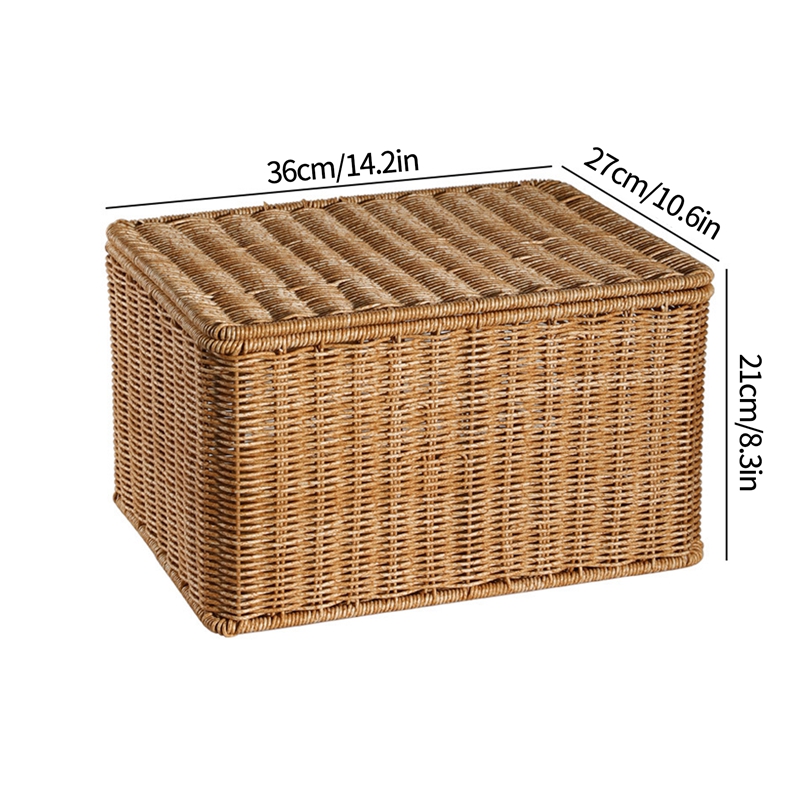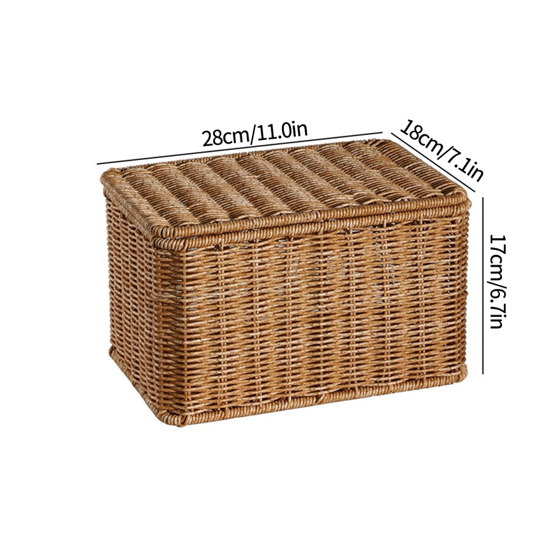 Ce panier est fabriqué en plastique, imitation rotin, ce qui le rend solide et très facile d’entretien car vous n’aurez qu’à passer un coup de chiffon dessus pour le garder propre. Le couvercle permet de garder vos affaires à l’abri de la poussière et de dissimuler discrètement le contenu du panier, préservant ainsi l’ordre et la propreté de votre espace de vie.